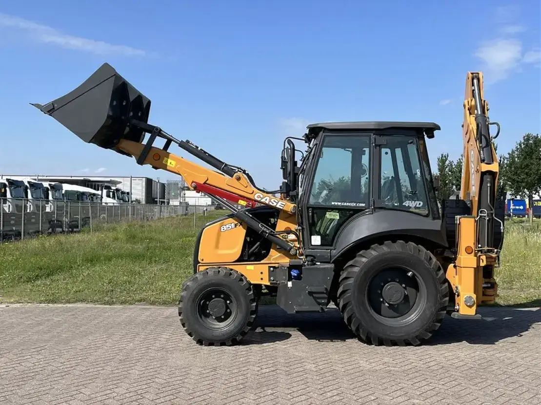 Dos : godet ouvert avec dents, profondeur de fouille maximale de 4,70 m.